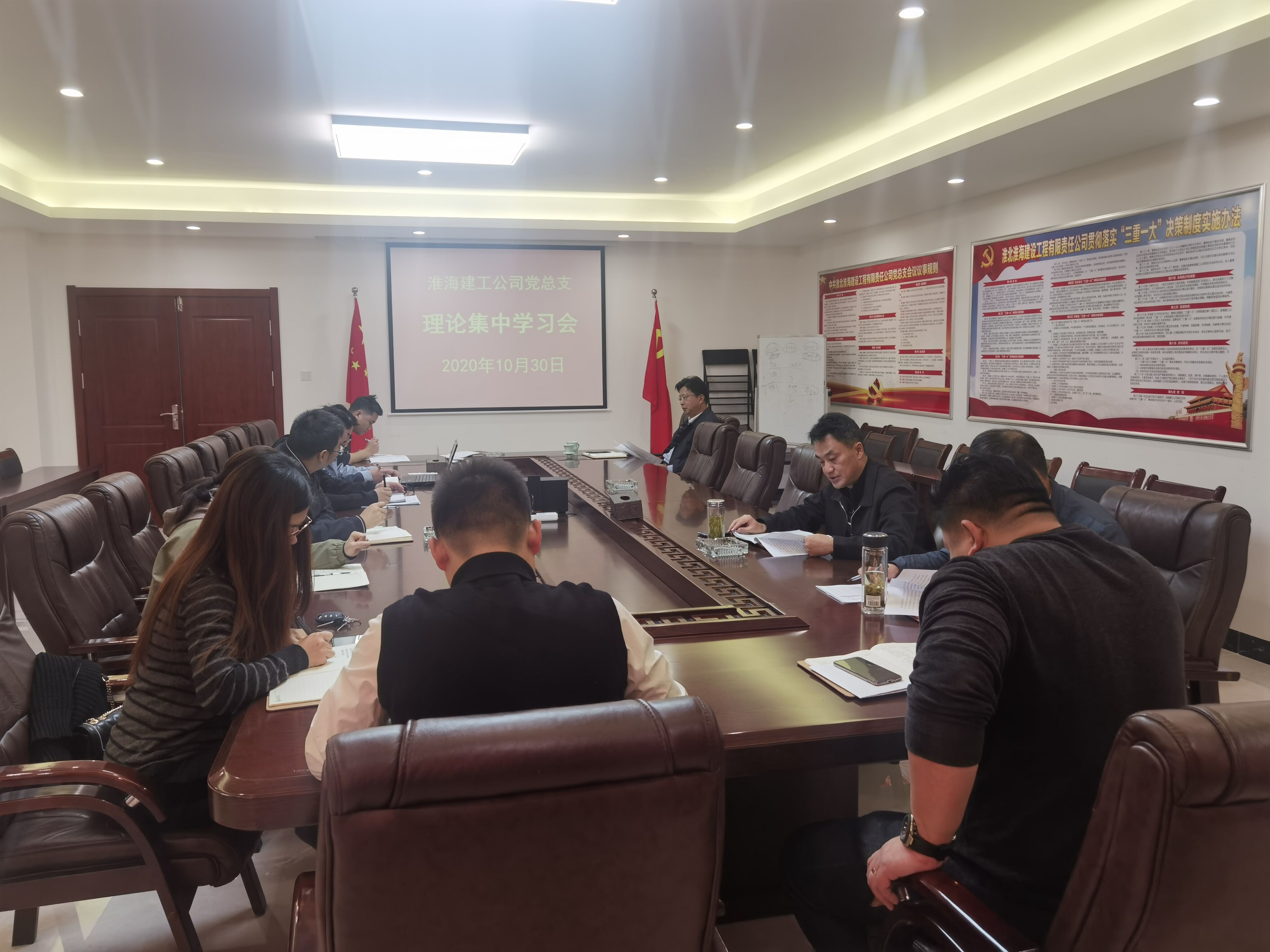 10月30日,淮海建工黨總支召開理論集中學習會議,認真學習《中國共產(chǎn)黨第十九屆中央委員會第五次全體會議公報》,迅速傳達黨的十九屆五中全會精神。