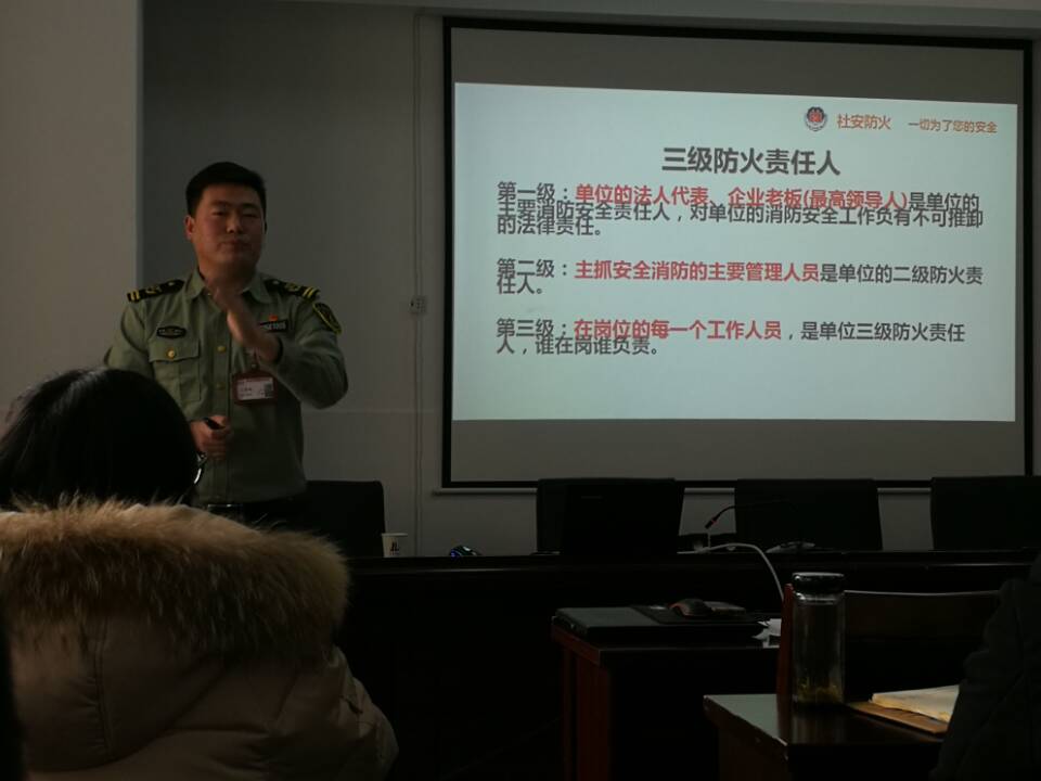 活動中,宣傳教官采取PPT課件宣講的方式向干部職工大力宣傳消防知識,并現(xiàn)場向廣大干部職工講解火災(zāi)的危險性和防火措施;單位員工消防安全四個能力建設(shè),單位消防設(shè)備的性能、滅火器材的使用方法;報火警,家庭撲救初起火災(zāi)以及自救逃生的知識和技能等。